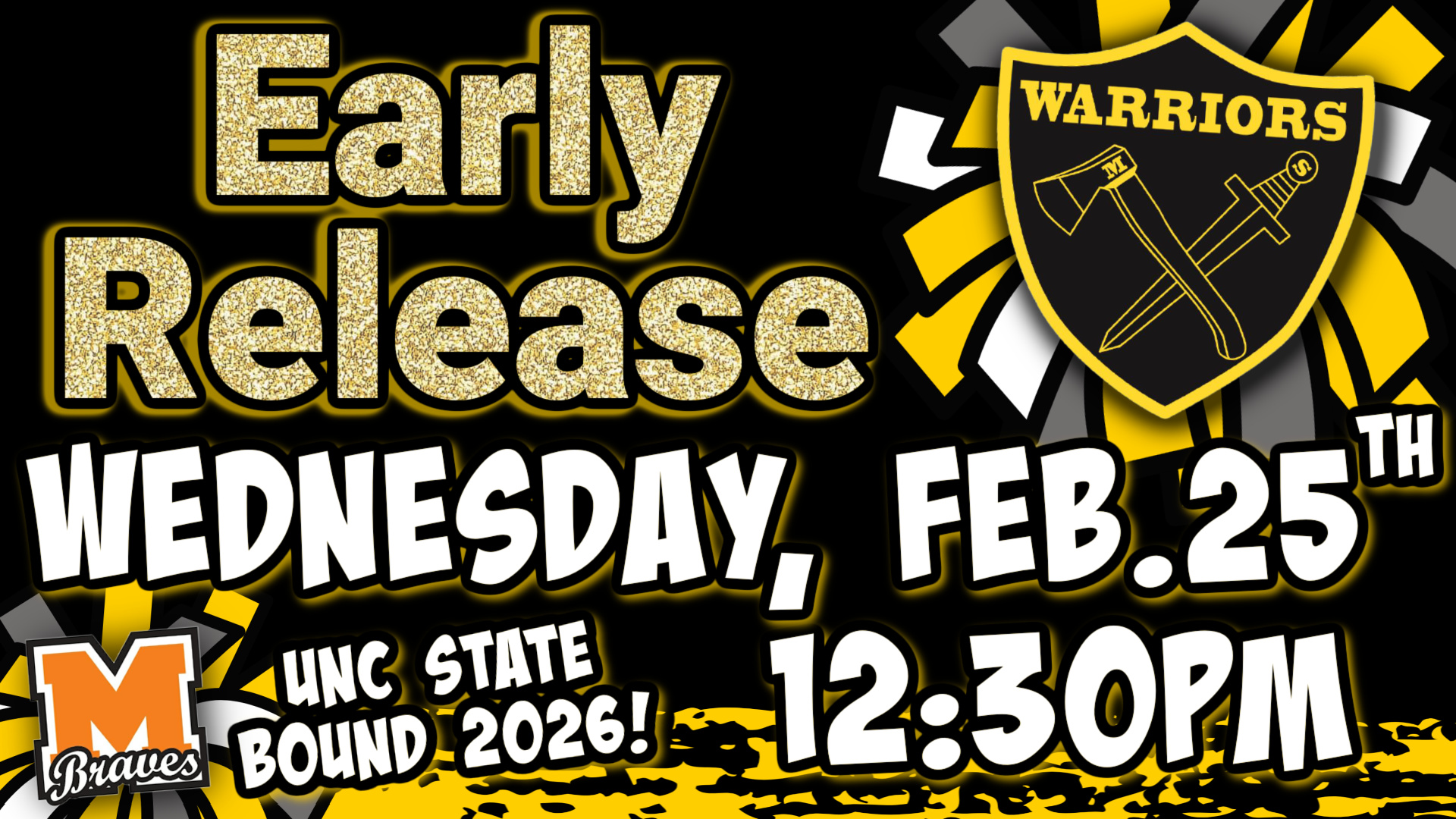 Friday, February 20th - SCHOOL SPIRIT!! GO BRAVES! GO WARRIORS!🧡💛🖤